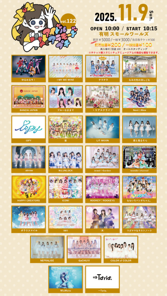 ゆるめるモ!/I MY ME MINE/テラテラ/なみだ色の消しごむ/BANZAI JAPAN/ブルーなままで/♮リアスクライブ/Next☆Rico/iSPY/蛍/LIT MOON/君と見るそら/airrow/NiLUNLOCK/Jewel☆Garden/wonder channel/HAPPY CREATORS/iCON!/ROOKEY♡ROOKEYS/なないろパンダちゃん。/ポラリスマイル/IWI!/-天-/ワガママなラストノート/NEFRALISE/GaCHU!!!/COLOR of COLOR/MiuMeno/→Taria./