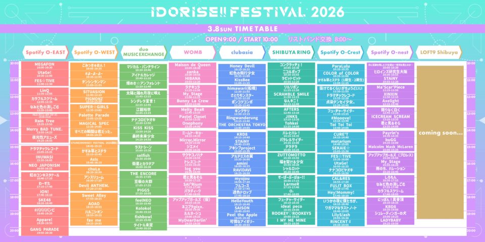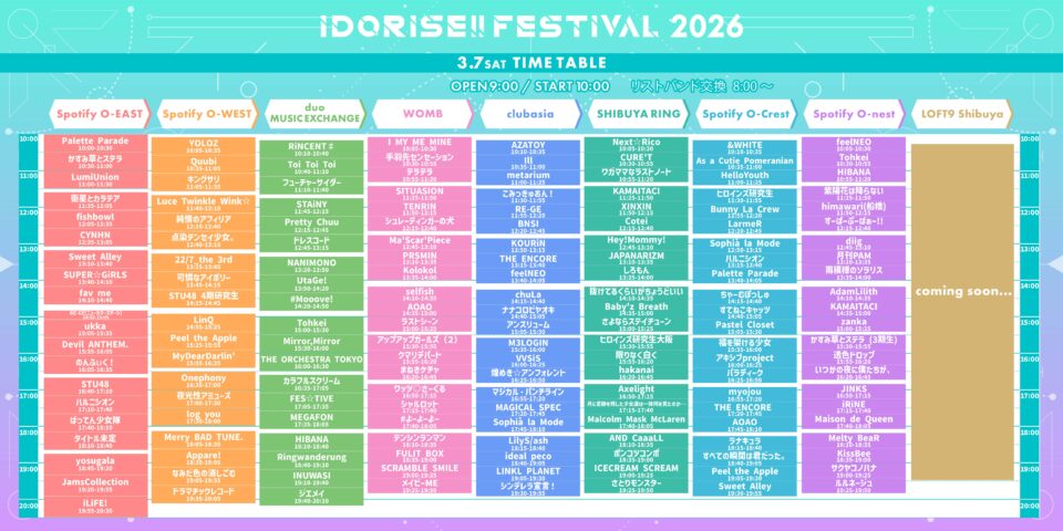 会場:Spotify O-EAST、Spotify O-WEST、Spotify O-nest、Spotify O-Crest、duo MUSIC EXCHANGE、WOMB、clubasia、LOFT9 Shibuya SHIBUYA RING (※9会場連動)