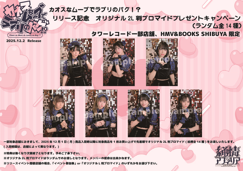 純情のアフィリア 9thシングル「カオスなムーブでラブリのバグ!?」店頭購入者特典プレゼントのお知らせ