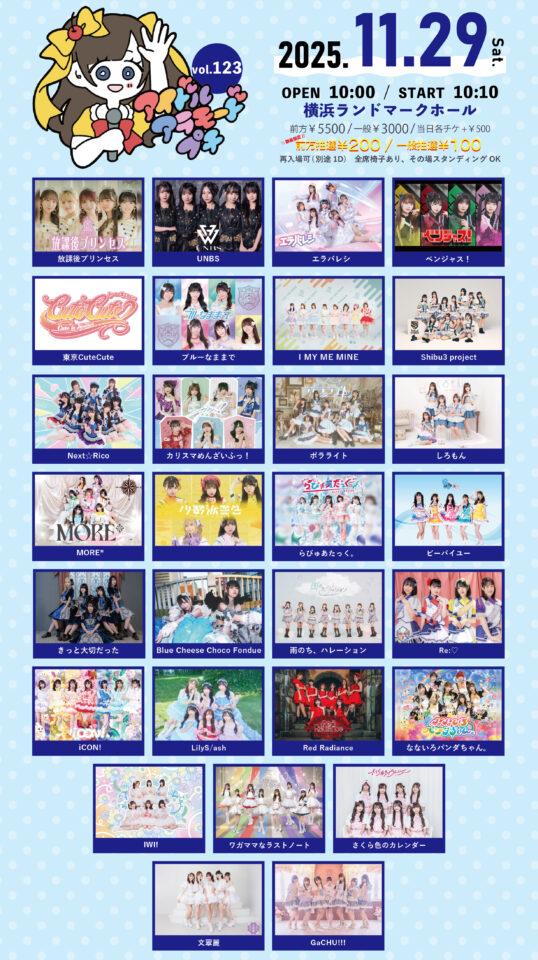 放課後プリンセス/UNBS/エラバレシ/ベンジャス!/東京CuteCute/ブルーなままで/I MY ME MINE/Shibu3 project/Next☆Rico/カリスマめんざいふっ!/ポラライト/しろもん/MORE*/マイノリティアラート/らびゅあたっく。/ビーバイユー/きっと大切だった/Blue Cheese Choco Fondue/雨のち、ハレーション/Re:♡/iCON!/LilyS/ash/Red Radiance/なないろパンダちゃん。/IWI!/ワガママなラストノート/さくら色のカレンダー/文翠麗/GaCHU!!!/