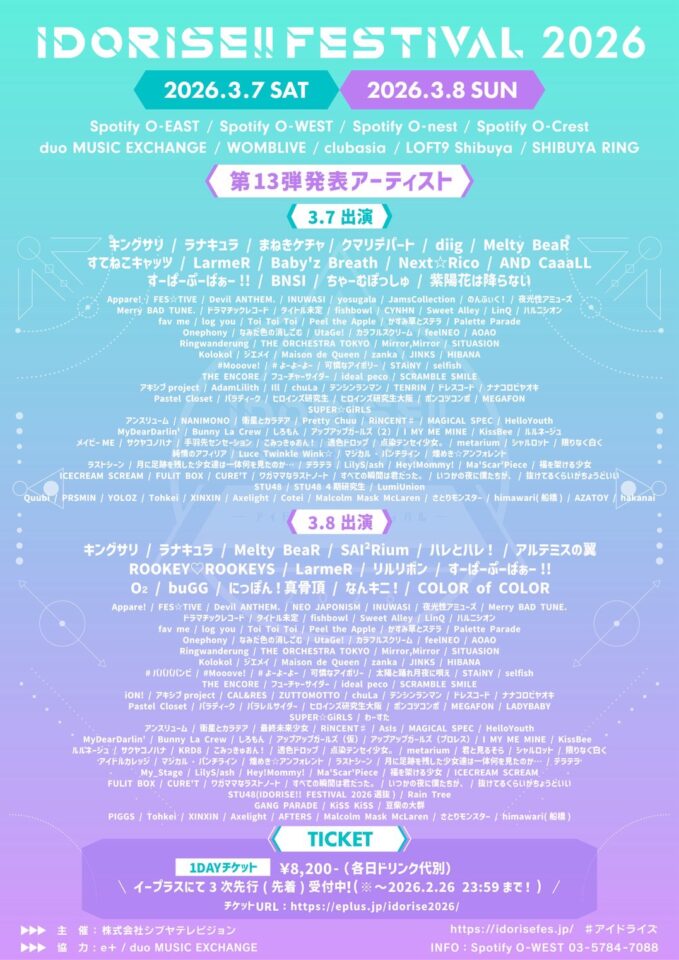 会場:Spotify O-EAST、Spotify O-WEST、Spotify O-nest、Spotify O-Crest、duo MUSIC EXCHANGE、WOMB、clubasia、LOFT9 Shibuya SHIBUYA RING (※9会場連動)