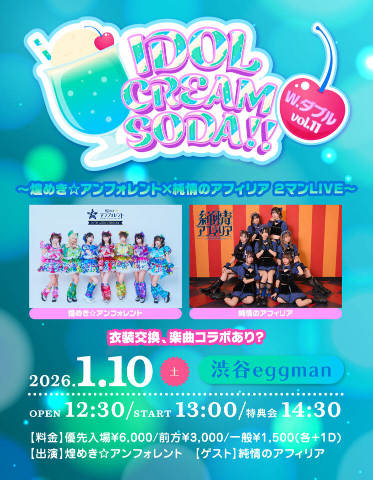 「IDOL CREAM SODA W.ダブル vol.11 〜煌めき☆アンフォレント× 純情のアフィリア 2マンLIVE〜」
