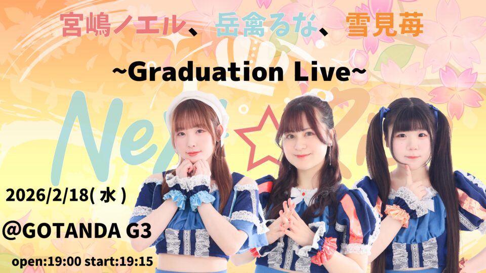 Next☆Rico 宮嶋ノエル、岳禽るな、雪見苺 ~Graduation Live~【日程】2026年2月18日(水)